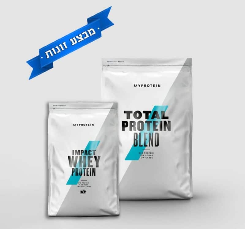 מבצע זוגות: אבקת תשלובת חלבונים (Total Protein Blend) במשקל 5 ק”ג + אבקת חלבון מי גבינה (Impact Whey Protein) במשקל 1 ק”ג.